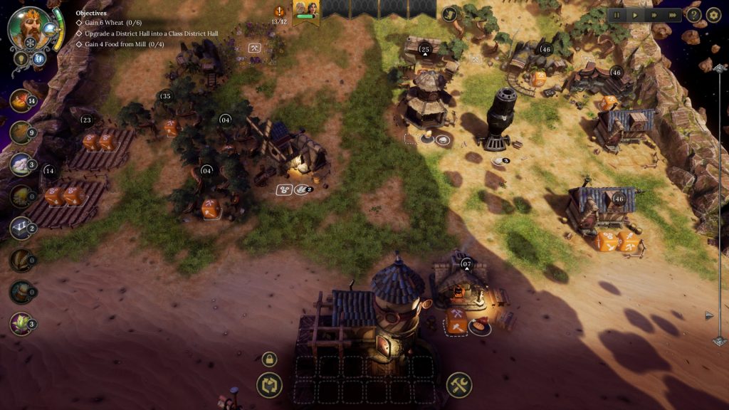 As is the case of any city builder you slowly grow your settlement up and carefully manage its resources. The problem is your resources are brought in by those die and depending on what face they land on they may not be able to perform the task you need. On top of that, the die have a durability that depletes with each usage or roll, when they reach zero they are removed from your dice pool (which has a limit of 12). A die being removed causes that dies class to lose some happiness and an unhappy populous is not something you want. Thankfully, you can mitigate that through events etc.