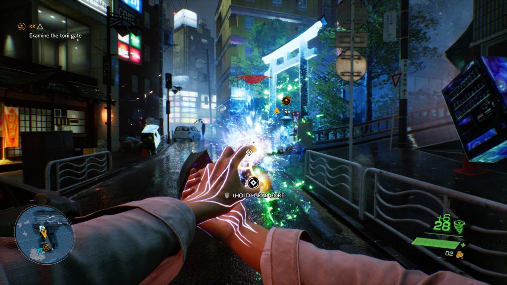 You play as Akito, a young man who is on a mission to save his sister from the mysterious man in a mask that kidnapped her from the hospital. At the start of the game Akito gains a stowaway known as KK, who’s own goals happen to align. For as long as you have KK onboard you can make use of all the spiritual powers he has and don’t take any fall damage regardless of the height you fall from.