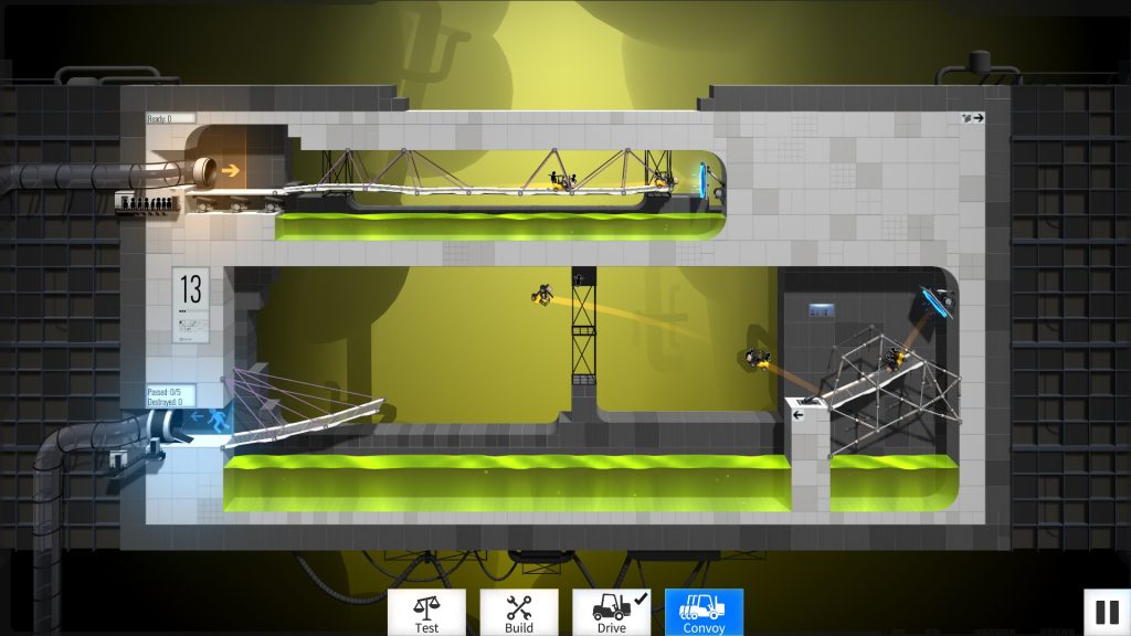 As I mentioned earlier this game is less about creating a stable and solid bridge (though you will need to do that sometimes) and more about puzzle solving. This is really brought to the fore by the introduction of propulsion and repulsion gel from Portal 2.