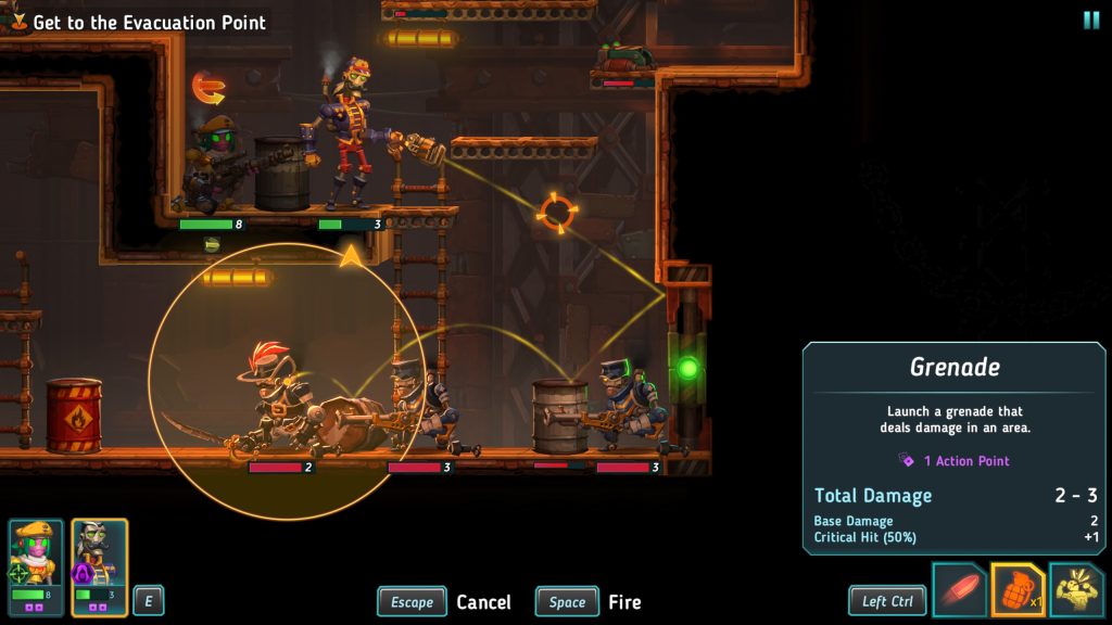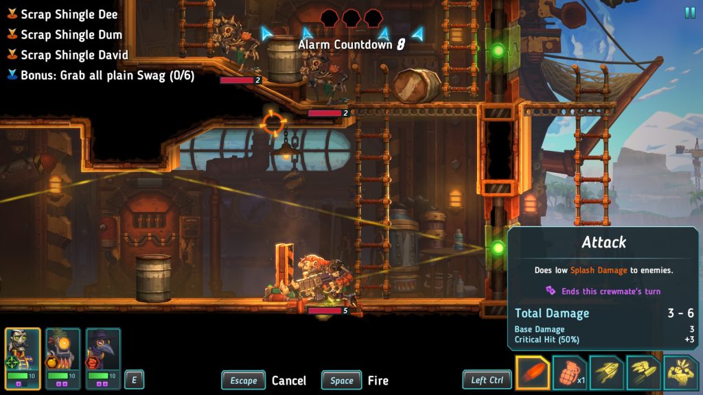 Just like in the original SteamWorld Heist this is a turn based tactical shooter, at least when in a mission, which is a majority of the game. At the games start you only have two crewmates (and Captain Quincy), but as you play you’ll hire in more crew, quite a bit more. Each crewmate comes with their own innate skill which can be enhanced later in the game.