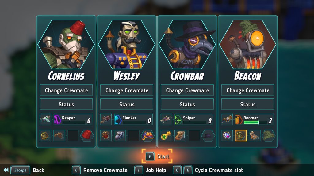Each crewmate has a job while on missions, the job is essentially their class and determines what base skills they have. As the crewman completes missions as that job they’ll gain XP which unlocks more skills until the job max’s out at fifth level. You can change a crewmate’s job by switching what weapon they’re equipped with. However, changing a crewmate’s job doesn’t transfer XP or levels. So you may wonder why bother doing it at all, what’s the benefit? The benefit is that some skills unlocked within that job apply to any other job they also take on. There are some that don’t automatically transfer but even those can be carried over with the use of cogs. As you play your crew will gain cogs, which are utilised to purchase skills in a job that the crewmate has previously been. This system allows you to essentially create a build that works to take advantage of a specific crewmate’s innate skills.