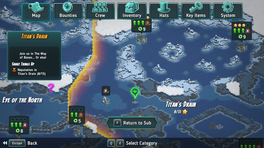 Unlike in the previous game SteamWorld Heist 2 has ship to ship combat, the weapons fire automatically so you simply need to focus on maneuvering. This added mechanic allows you to explore the world and there is quite a bit to explore. I recommend downloading the optional texture pack if your system can take it, it really makes the world map stand out.