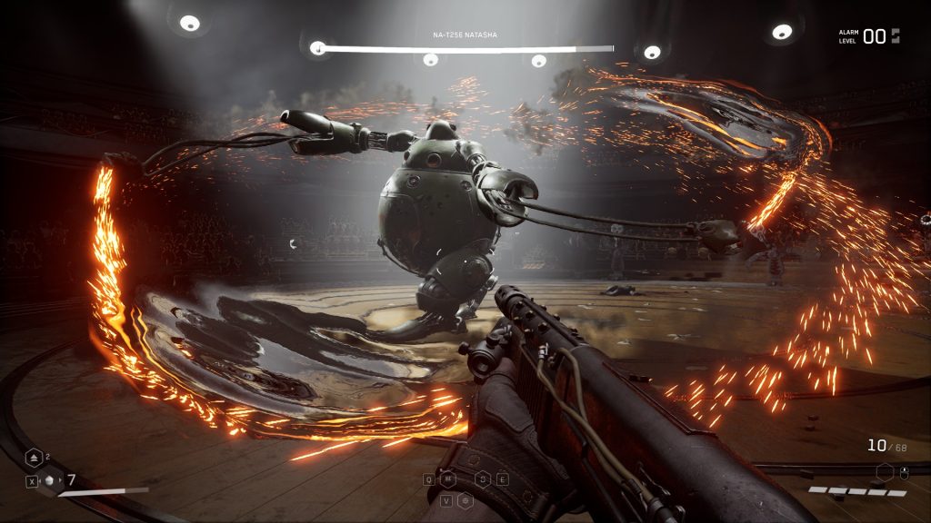 As you traverse the area known as Facility 3826 you’ll end up fighting often and this game doesn’t hold back on swarming you with enemies. Not to the levels of Space Marine 2 but if you aren’t careful you can easily be faced with six or seven enemies at once. I do quite like that many of the enemies aren’t human shaped, for example there are some that are essentially sawblades on legs or there’s my personal favourite the ‘Vatrushka’ which is a turret that rolls around like a wheel.