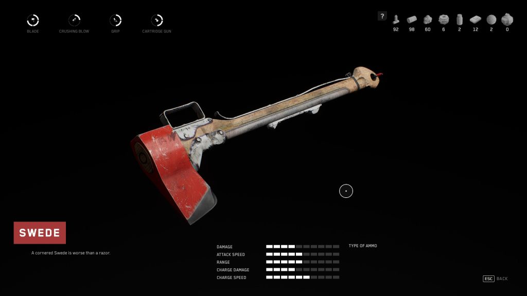 Crafting and upgrading weapons requires you to find resources, thankfully most of them are easily found by searching the environment or raiding the bodies of your enemies. You can also choose to disassemble items you find that will give you some resources too. I like that if you choose to dismantle a weapon you’re given a full refund of all the resources you spent on them.